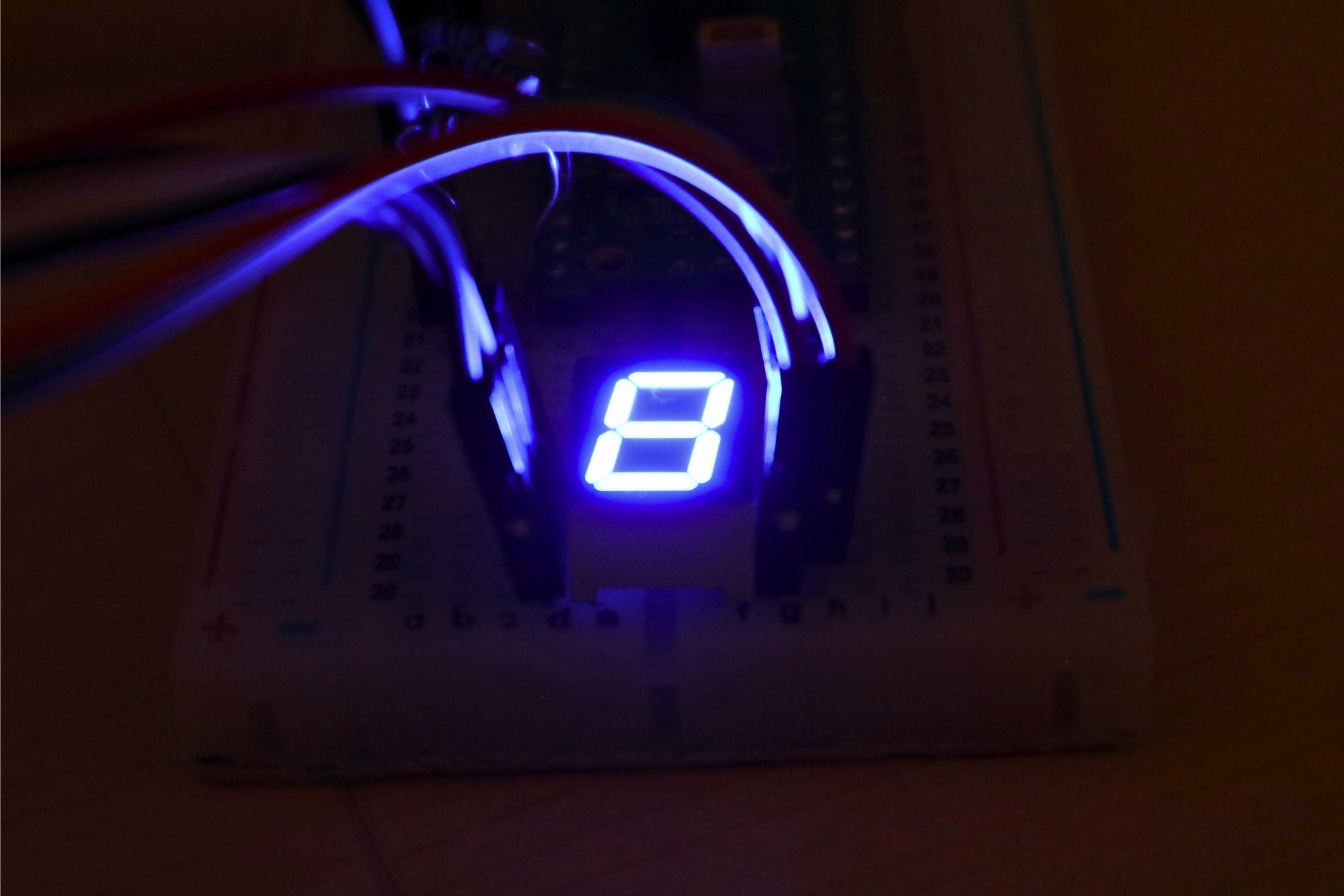 übernimmt dann das Setzen der Segmentwerte für eine gewünschte Zahl. In der Endlosschleife durchläuft das Programm alle Ziffern von 0–9, zeigt sie nacheinander an und wechselt im Sekundentakt.