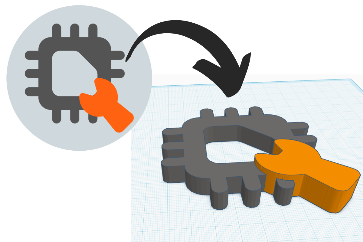- Tinkercad wandelt die Vektorgrafik in ein 3D-Objekt um.