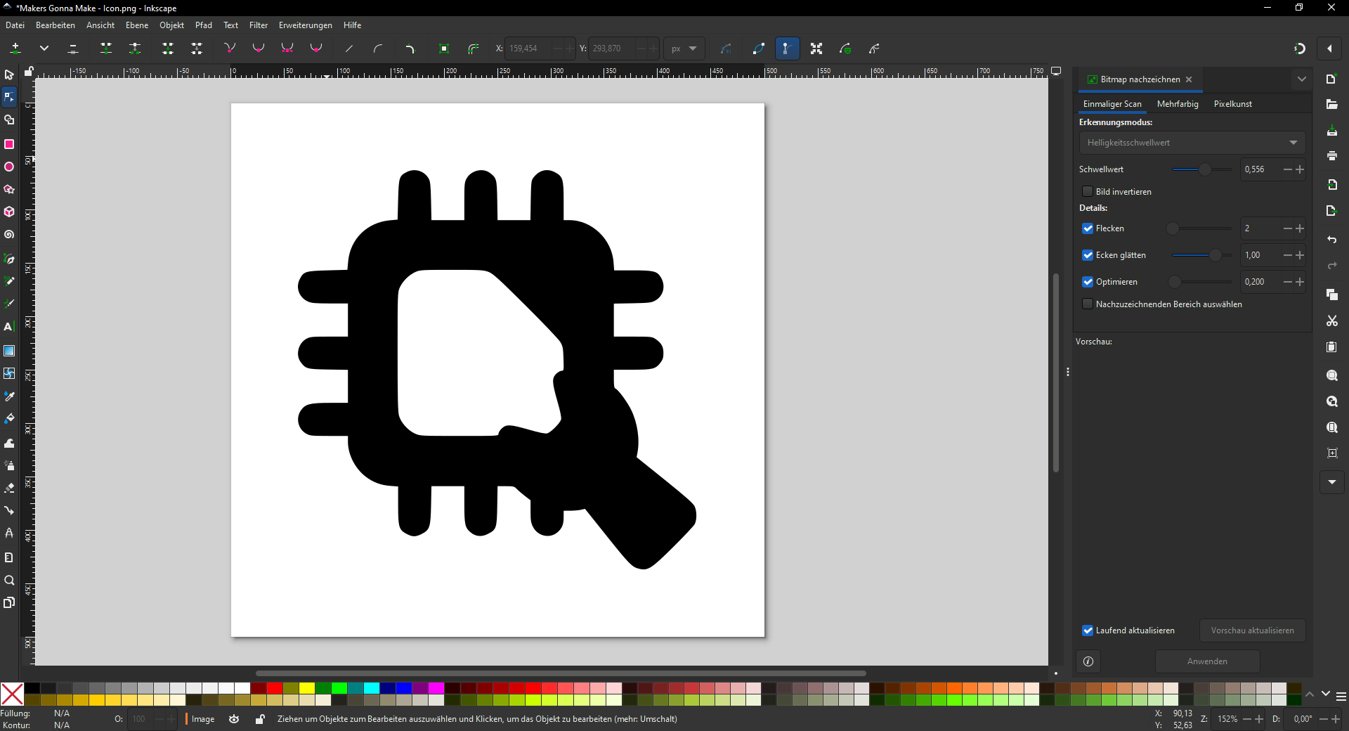 - Lösche die ursprüngliche Bitmap und speichere die neue Vektorgrafik als SVG (Datei > Speichern unter).