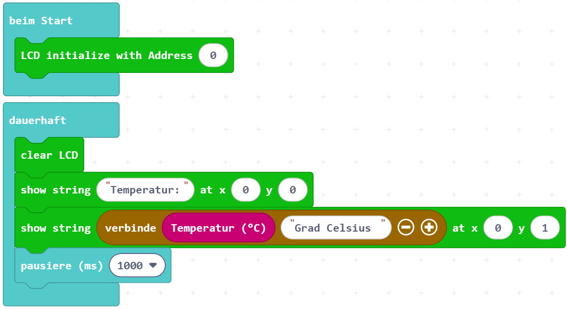 - Füge danach den Block Zeige Text auf LCD hinzu.