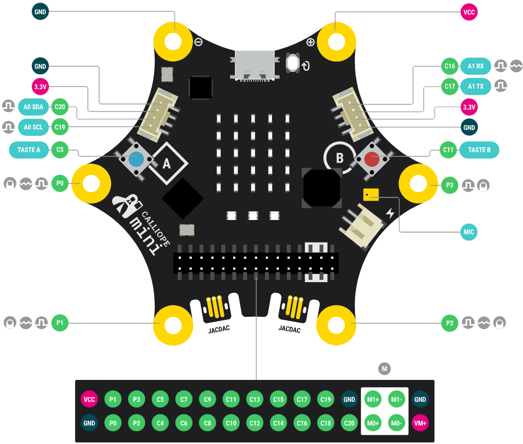 Quelle: MakeCode Calliope Dokumentation, verfügbar unter: [https://docs.calliope.cc/tech/hardware/pins/]